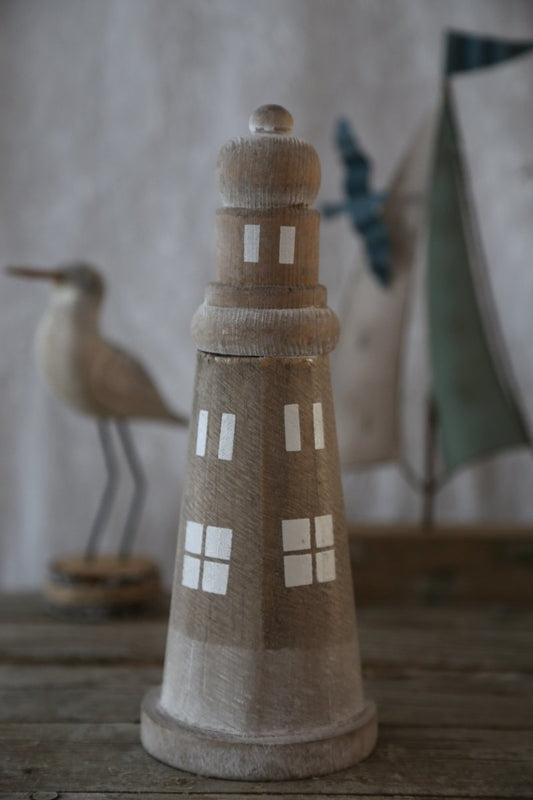Leuchtturm - maritim - Holz - natur - B 8,0 cm x H 21,5 cm