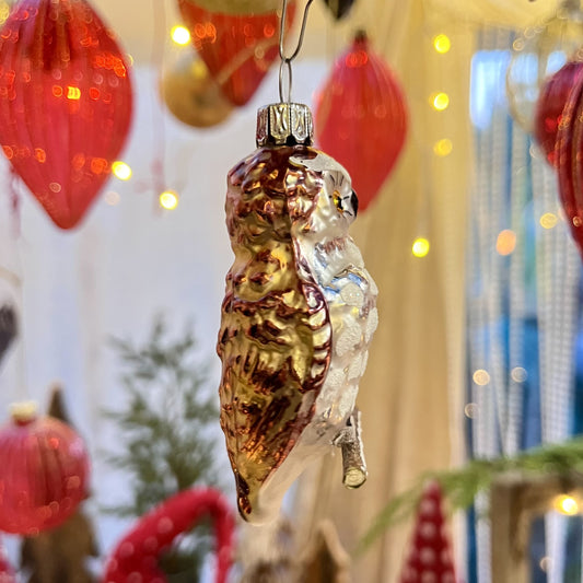Lauscha Christbaumschmuck - Eule mit Zweig" - Glas - braun / silber