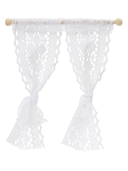 Vorhang auf Holzstange - weiß mit Spitze - 11,5 x 12 cm