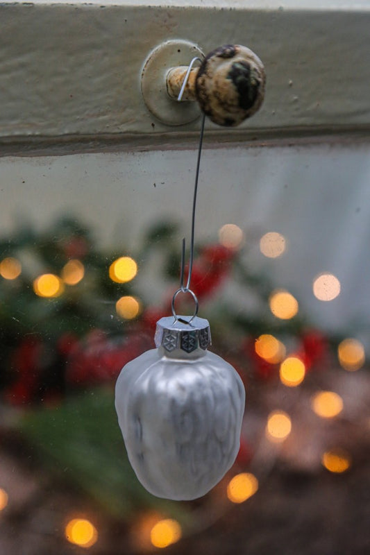 Walnuss - 6-teiliges Set - zum Hängen - Glas - silber-weiß - ca. 3,7 x 5,1 cm