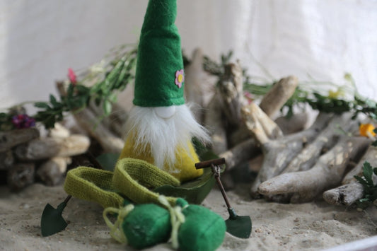 Wichtel - mit Schlenkerbeinen - gelb-dunkelgrün - H 43 cm