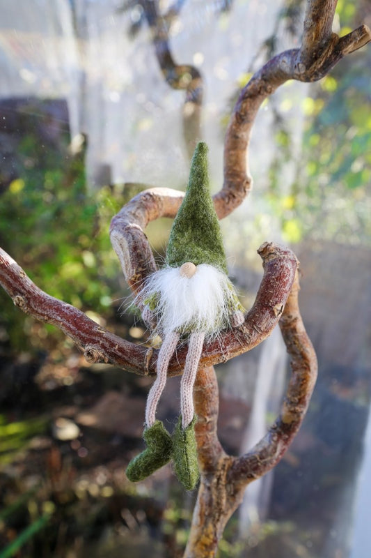 Wichtel - mit Schlenkerbeinen - Mütze dunkelgrün - H 19 cm