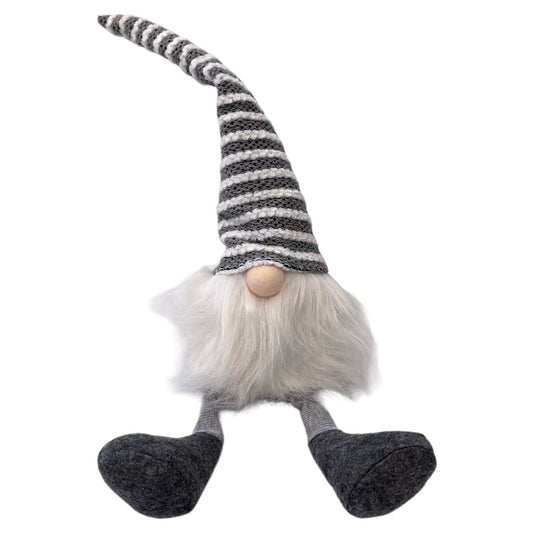 Wichtel - Strickmütze - Schlenkerbeine - weißer Bart - rot / grau - ca. 63 cm