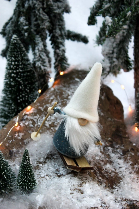 Wichtel - Ski - weißer Bart - weiße oder grüne Mütze - ca. 14 cm