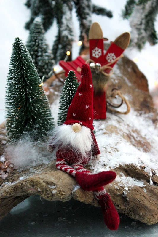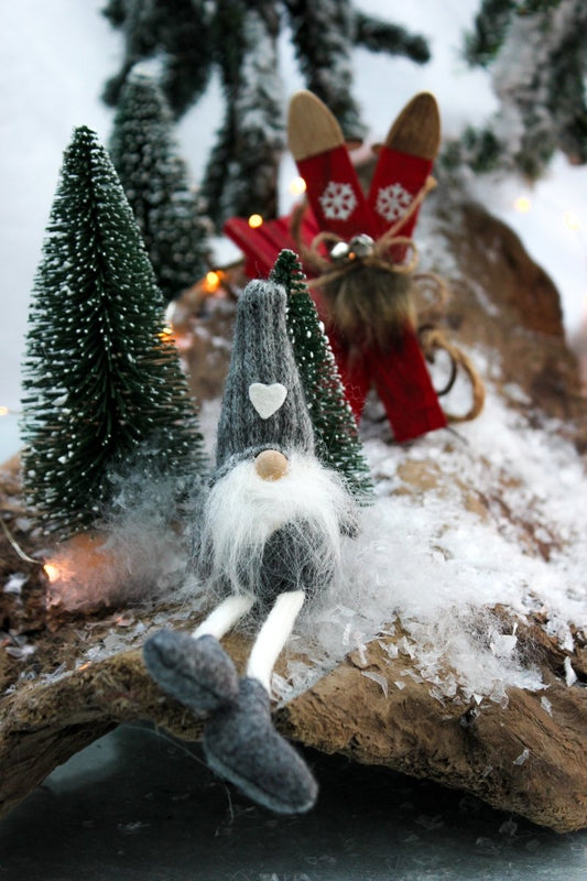 Wichtel - Schlenkerbeine - Strickmütze - Herz - rot oder grau - ca. 17 cm