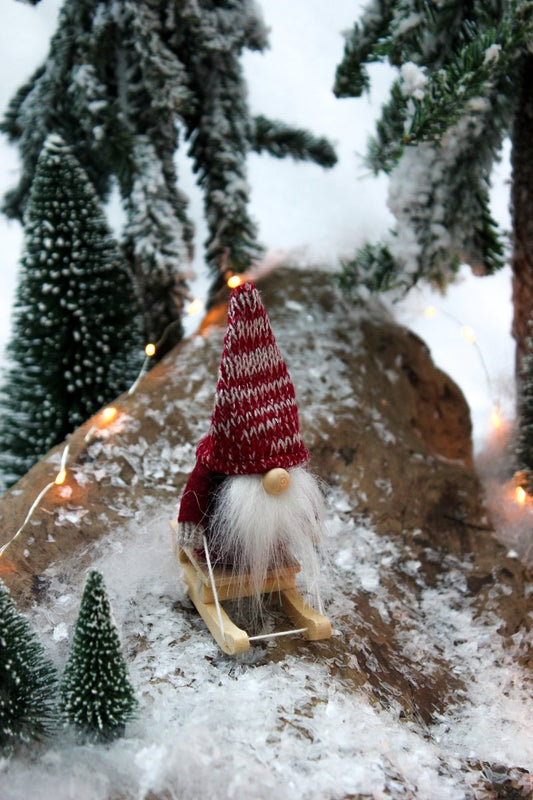 Wichtel - Schlitten - rot oder creme - 2-fach sortiert - ca. 11 cm