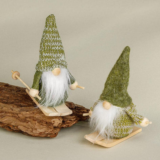 Wichtel - Ski - weißer Bart - grün - ca. 10 cm