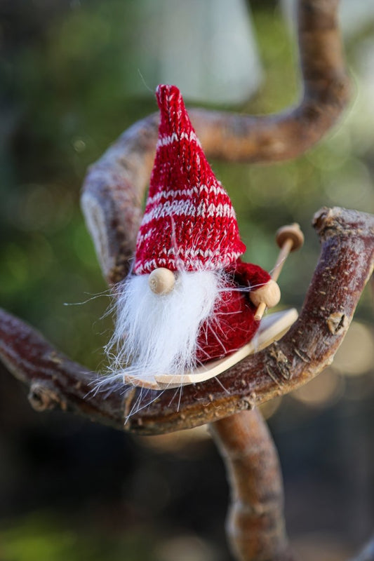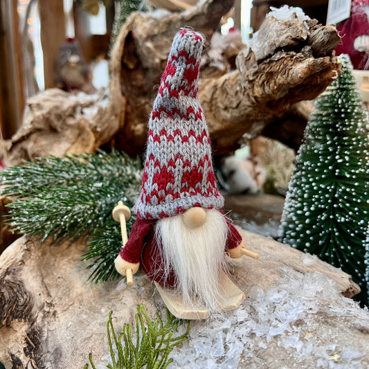 Wichtel - Ski - weißer Bart - rot oder creme - 2-fach sortiert - ca. 10 cm