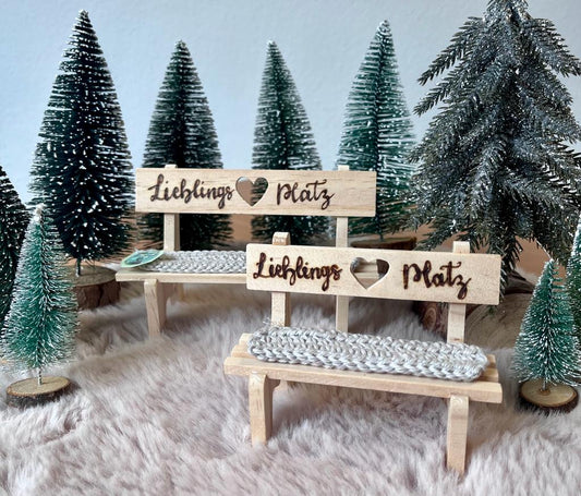 Bank "Lieblingsplatz" - Brandmalerei - Holz - 10 x 4,5 x 7,5 cm - Wichteltür Zubehör
