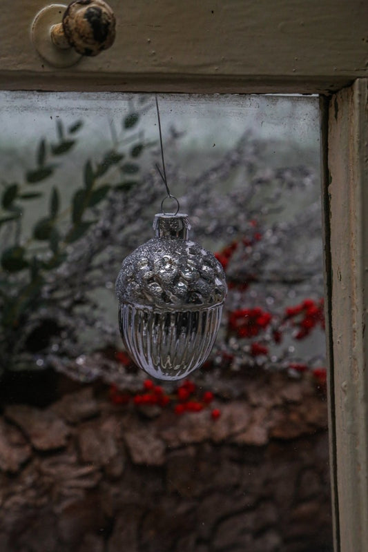 Eichel - 4-teiliges Set - Glas - silber / weiß - H 7 cm