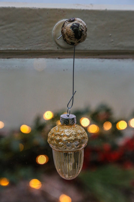 Eichel - 6-teiliges Set - zum Hängen - Glas - creme / gold - ca. 3,7 x 5,1 cm