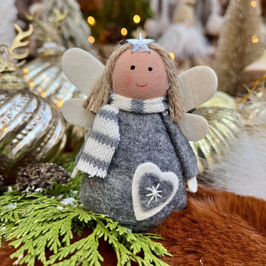 Engel aus Filz mit Sternenkranz - weiß oder grau - ca. 10 cm