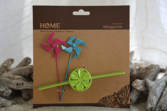 3- teiliges Set - Wippe und Windräder - Metall - Zubehör Wichteltür