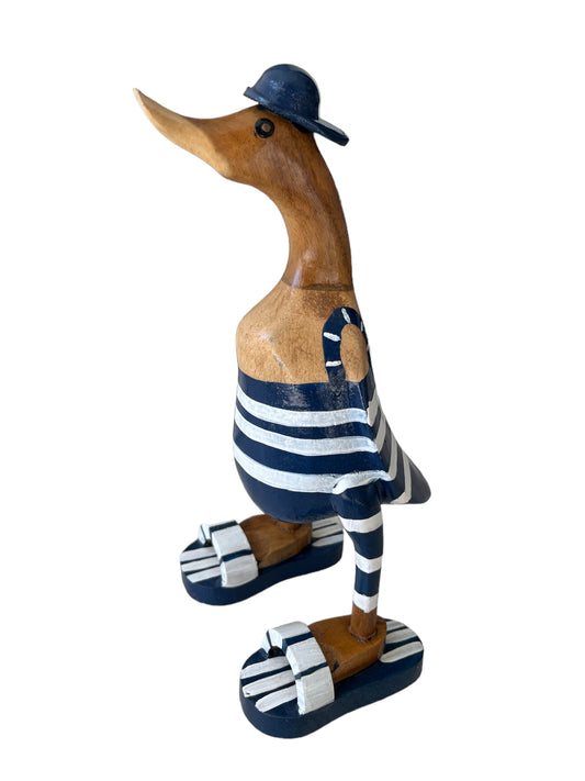 Ente aus Bambus mit blauen Flip Flops und Cap ca. 25 cm