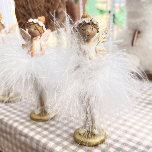 Elfe mit Federn - in 2 Varianten - stehend - weiß / gold - H ca. 12 cm