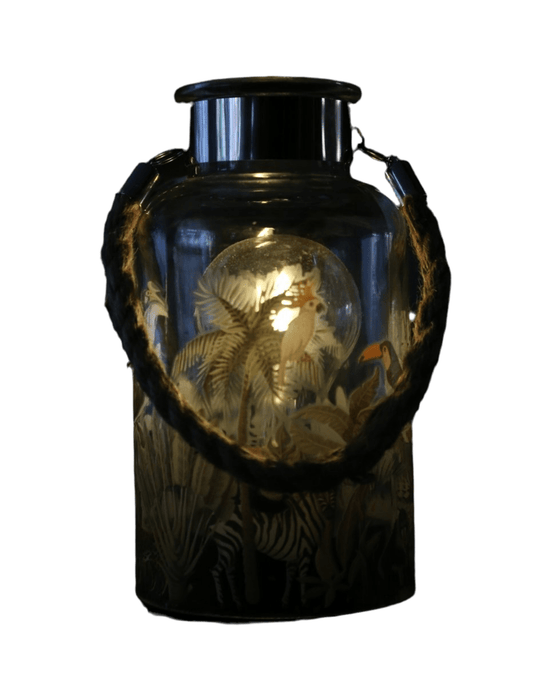 Laterne - Glühbirne im Glas - Dschungel - zum Hängen - B 10 cm x H 32 cm