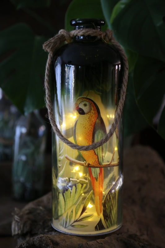 Laterne - Lichterkette in der Flasche - Dschungel - mit Soundeffekt - B 11 cm x H 31 cm