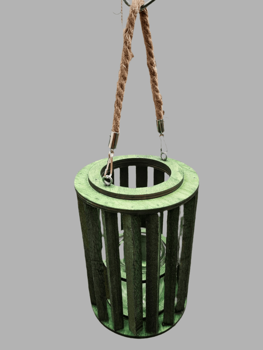 Laterne - mit Glas - Holz - zum Hängen - H 21 cm x D 15 cm