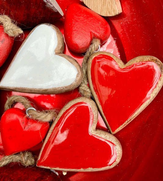 Herz - Holz - natur - weiß / rot - zum Hängen