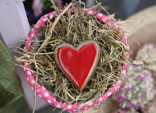 Herz - Holz - natur - rot / weiß - zum Hängen
