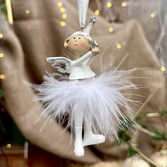 Federengel mit Krönchen - weiß-gold - 2 Varianten - ca. 11,5 cm