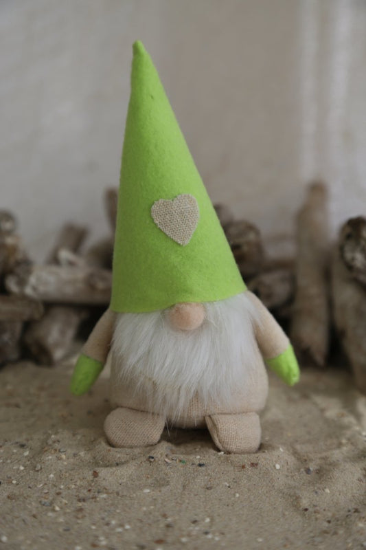 Wichtel - weißer Bart - Filzmütze - Leinen - hellgrün - 15 cm