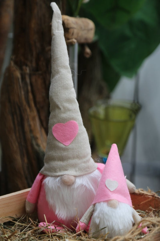 Wichtel - weißer Bart - Filzmütze - Leinen - rosa - 35 cm