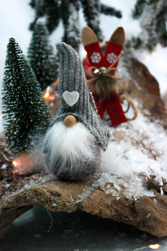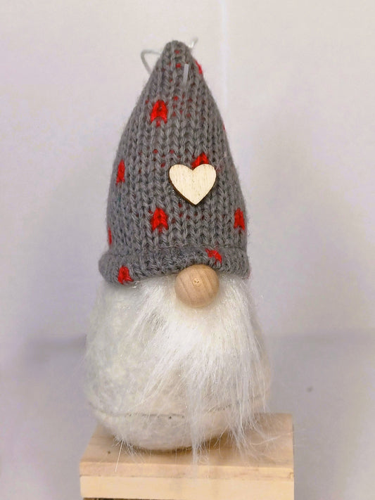 Wichtel - Strickmütze mit Herz - zum Hängen - rot oder grau - ca. 10 cm