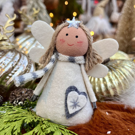 Engel aus Filz mit Sternenkranz - weiß oder grau - ca. 10 cm