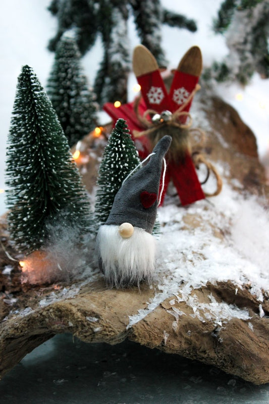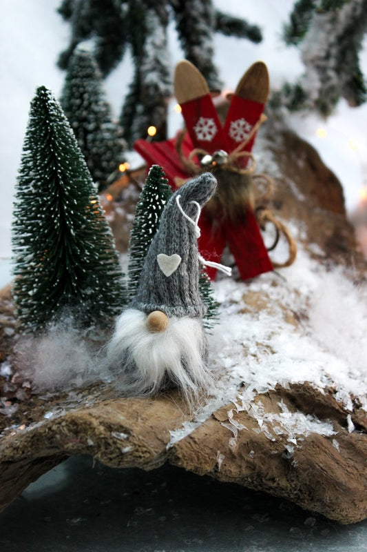 Wichtel mit Samtmütze und Herz - zum Hängen - rot oder grau - ca. 11 cm
