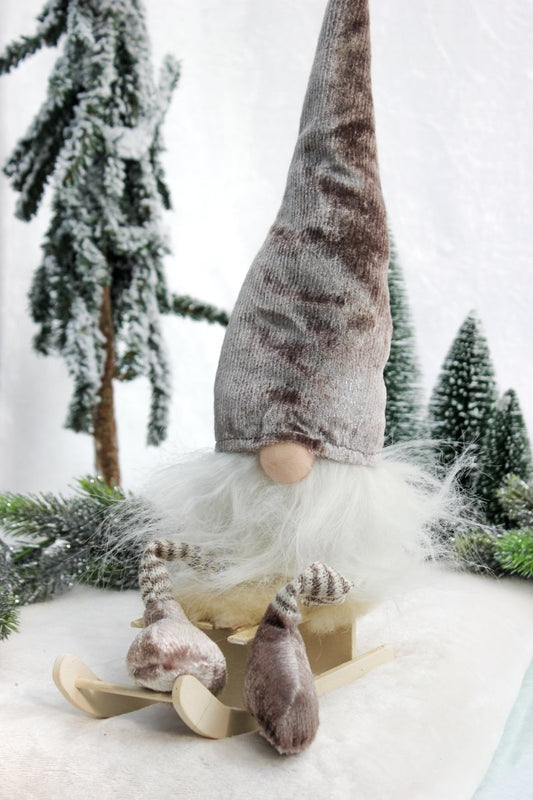 Wichtel - Kantenhocker - Mütze aus Samt - grau - 33 cm
