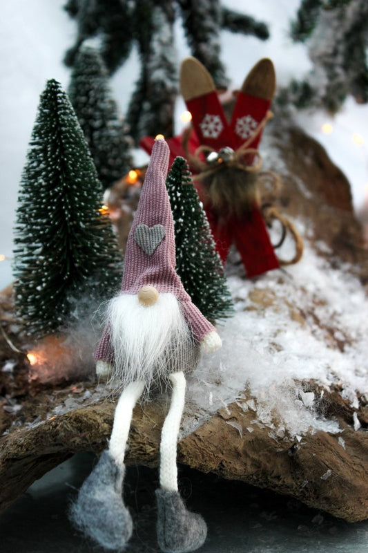 Wichtel - Schlenkerbeine - Herzerlmütze - rosa oder grau - ca. 20 cm