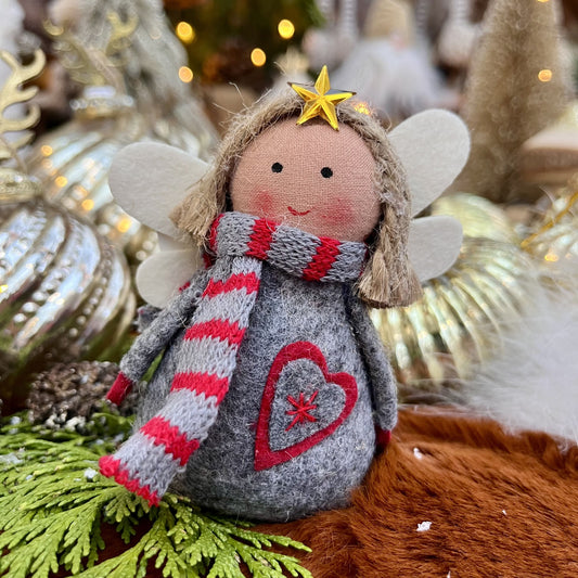 Engel mit Goldstern - rot oder grau - ca. 10 cm