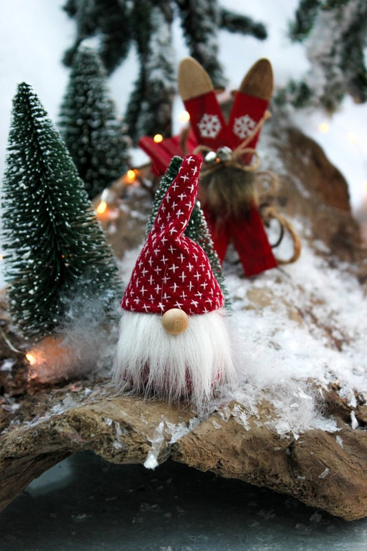 Wichtel - Filzmütze - weißer Bart - zum Hängen - rot oder grau - ca. 12 cm