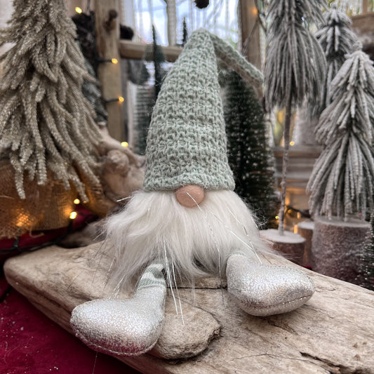 Wichtel - Strickmütze - Fellbart mit Silbersträhnen - mint-silber - 40 cm