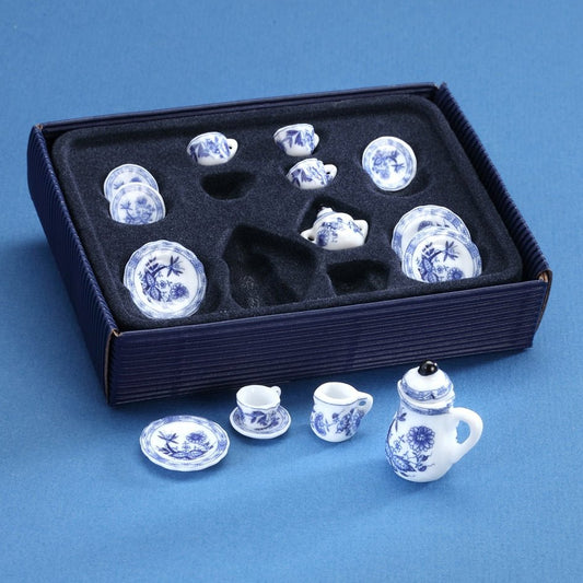 Kaffeeset "Zwiebelmuster" - 15-teilig - Porzellan - weiß / blau