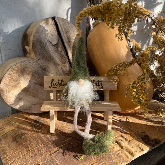 Bank "Lieblingsplatz" - Brandmalerei - Holz - 10 x 4,5 x 7,5 cm - Wichteltür Zubehör