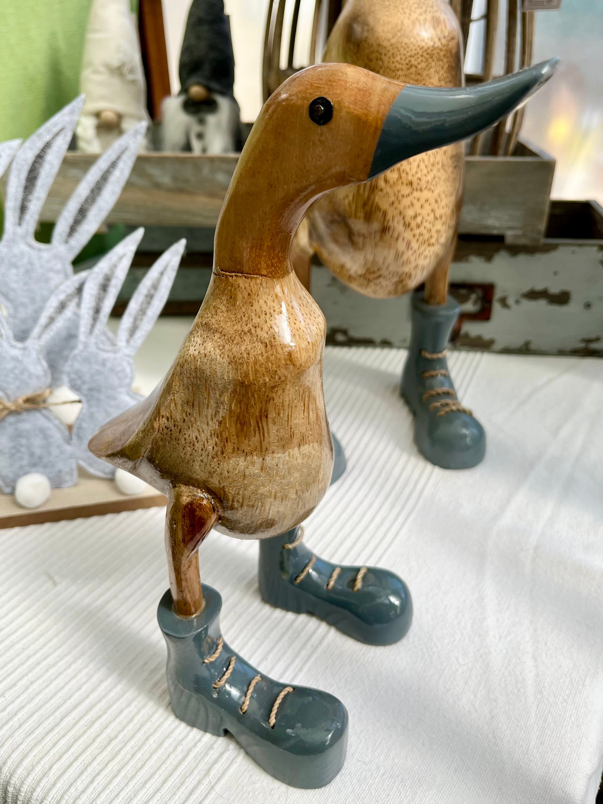 Ente aus Bambus mit grauen Stiefeln ca. 25 cm