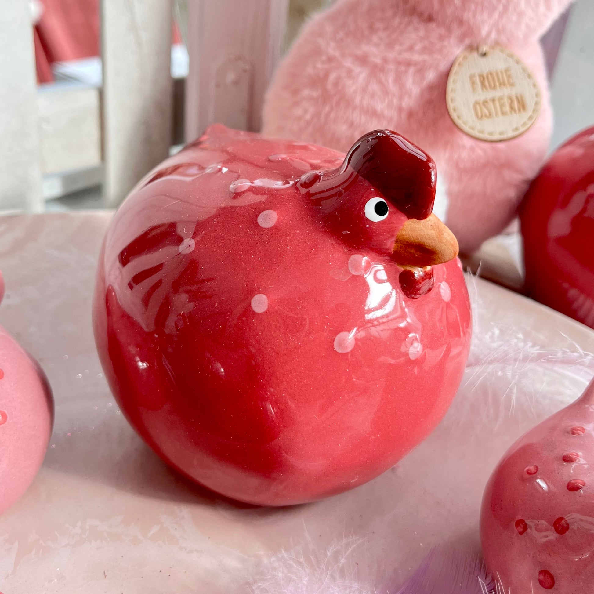 Dieses Huhn aus Keramik gibt es in 4 Farben und in 2 Größen.